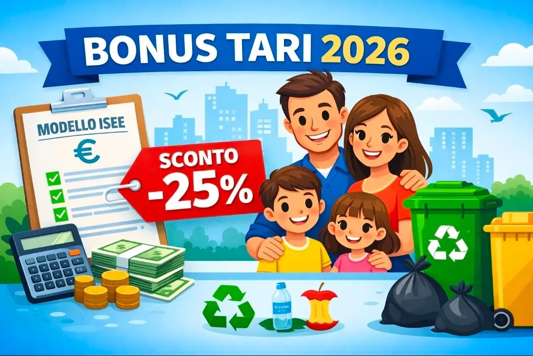 Bonus Sociale Rifiuti: novità TARI 2025 Il Bonus Sociale Rifiuti - agevolazione economica introdotta dall’ARERA per sostenere le famiglie in difficoltà economica - introdotto dal DPCM n. 24 del 21 gennaio 2025 e disciplinato dalla delibera ARERA n. 355/2025, sarà erogato nel corso del 2026 e prevede